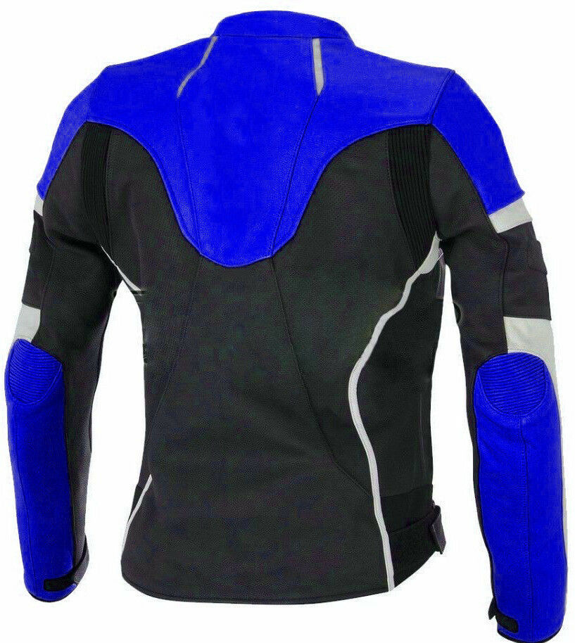 Men Blue & Black Biker White Linings Speed Hump Real Leather Safety Pads Jacket