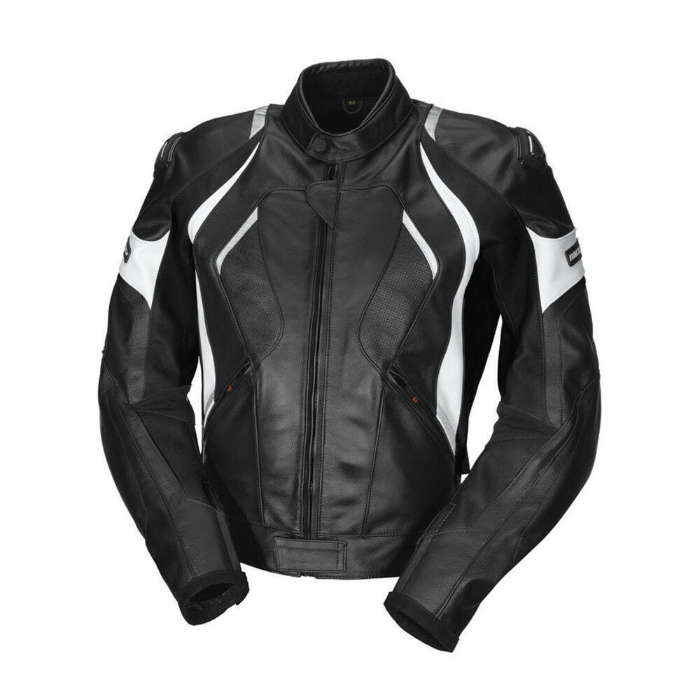 Handmade Men Black Biker White Stripe Genuine Cowhide Leather Safety Pads Jacket