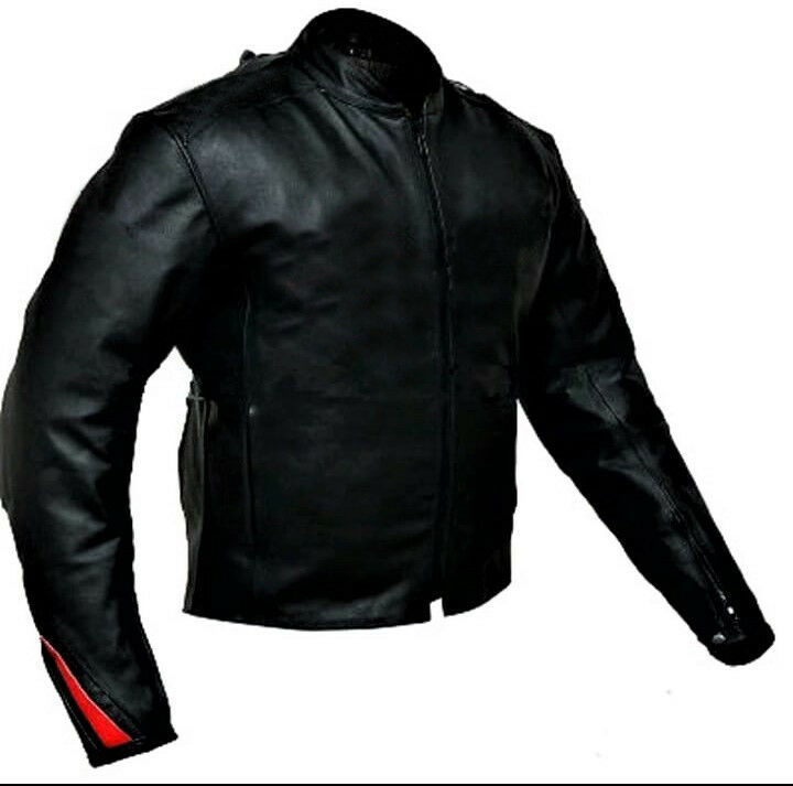Handmade Men Black Motorcycle Front Zipper Real Leather Safety Pads jacket