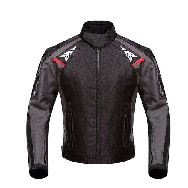 Hand Made Men Black Motorcycle Front Zipper Genuine Leather Safety Pads jacket