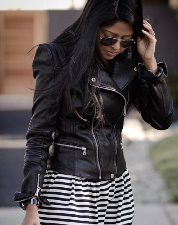 Women Black Motorbike Jacket Brando Real Leather Front Zip Closure Outer Wear