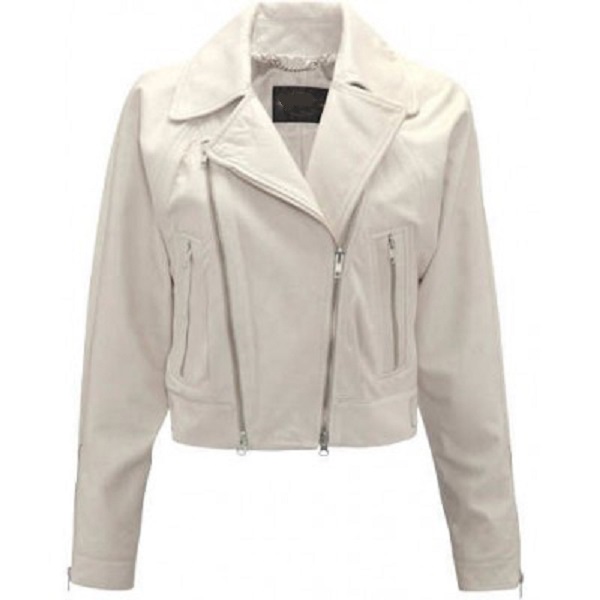 Customize White Women's Jacket With Leather Double Zipper Brando Outer Wear