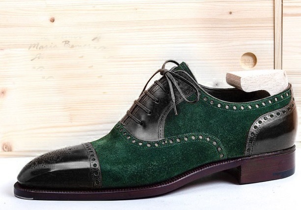 Men’s Handmade Green & Black Shoes, Men’s Leather & Suede Cap Toe Shoes