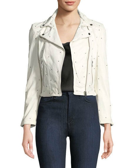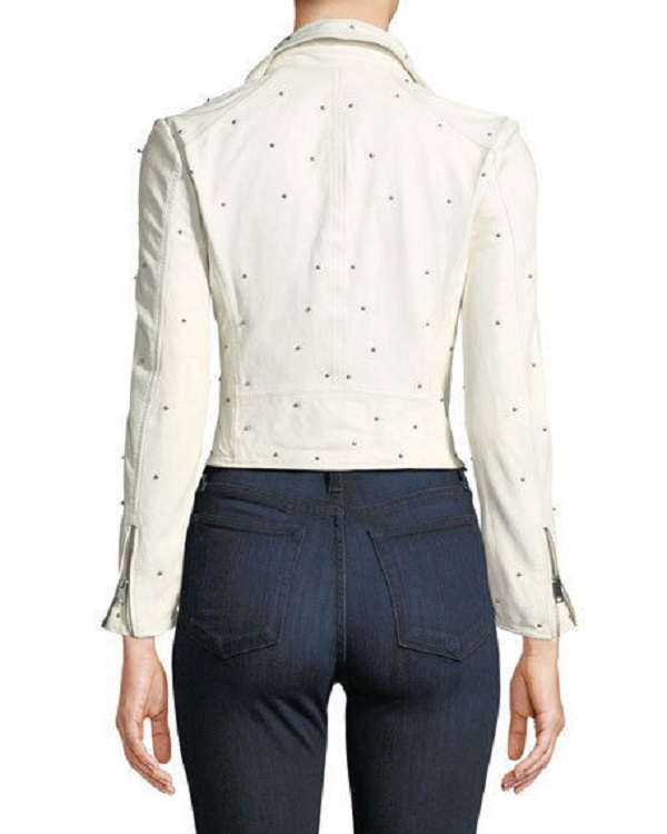 Women's White Color Biker Slim Fit Real Leather Brando Silver Small Studs Jacket