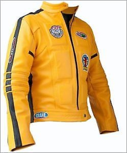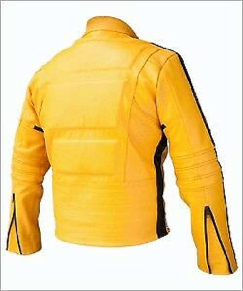 Mens Motorcycle Jacket Yellow Leather Fully Zipped Biker Kill Bill Design Hunter
