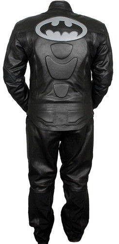 New Batman Dark Knight Full Black Motorcycle Cowhide Leather Two Piece Suit Pads