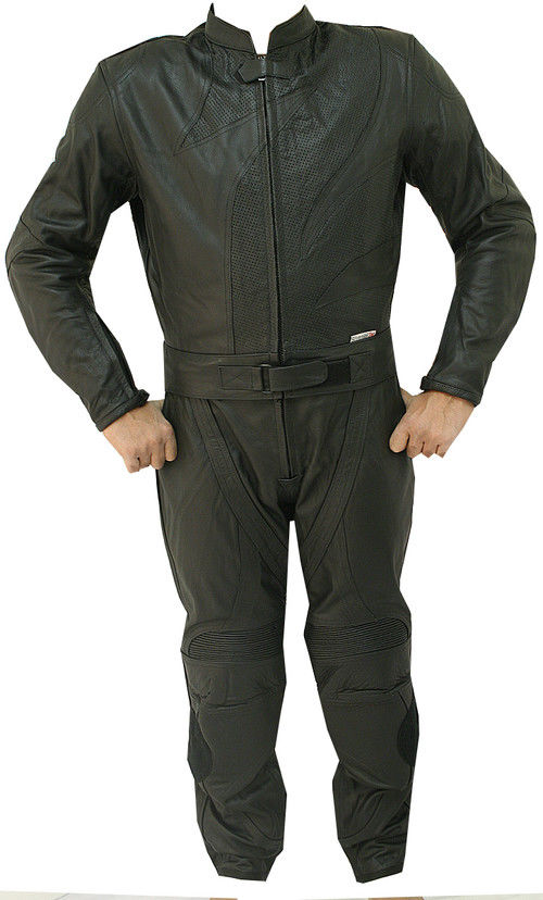New Man Fire Skull Black Motorcycle Racing Cowhide Leather 2 PC Suit Safety Pads