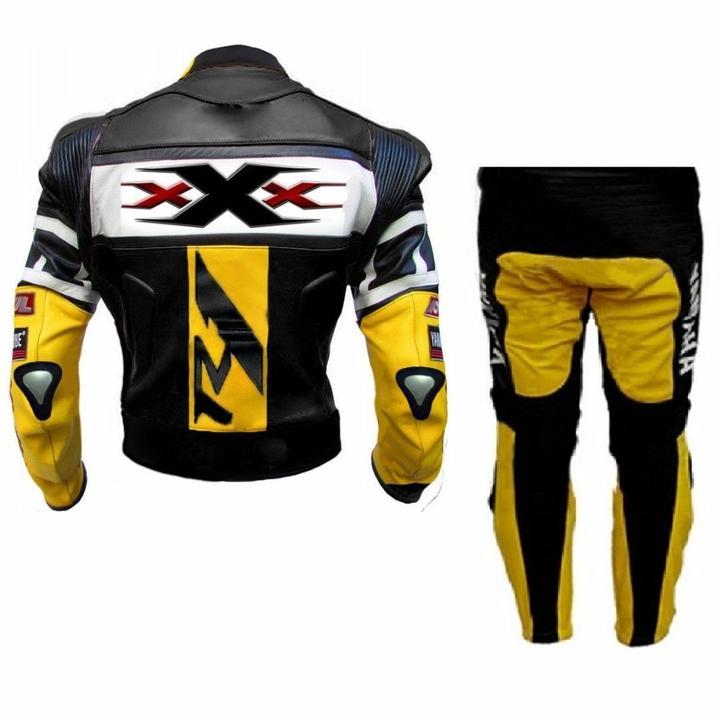 Men Black & Yellow Sports Racing Motorcycle Leather Suit Jacket & Pants UK