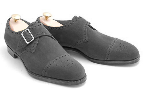 Oxfords Cap Toe Monk Strap Gray Suede Mens Handmade Shoes