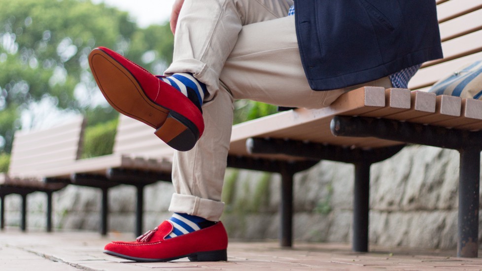 Red Tassel Loafer Slip On Shoes Suede Premium Leather Rounded Apron Toe Men's