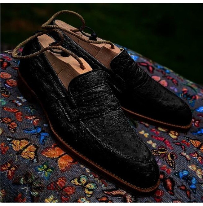 Handmade Men Black Ostrich Print Leather Dress Shoes , Business Shoes