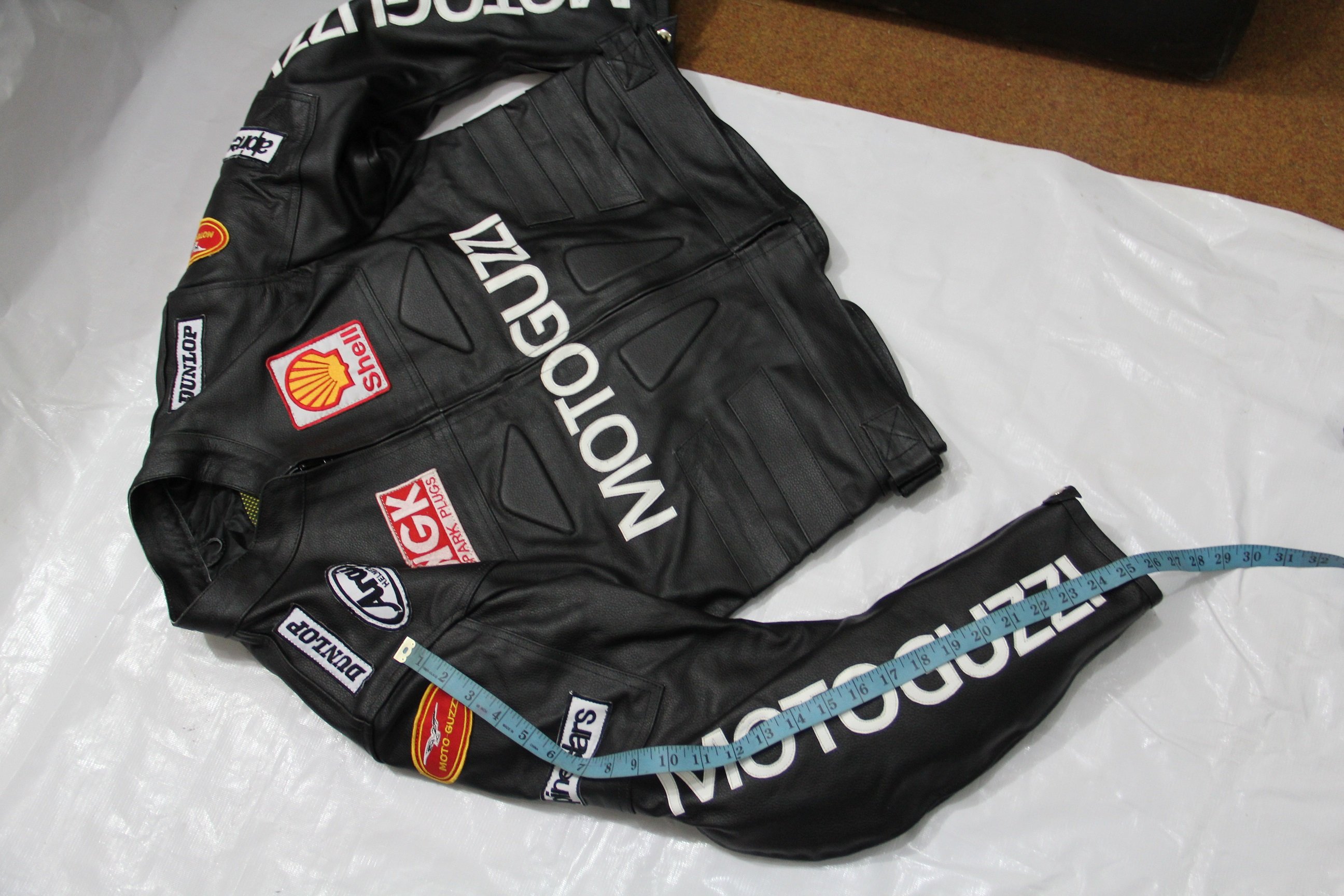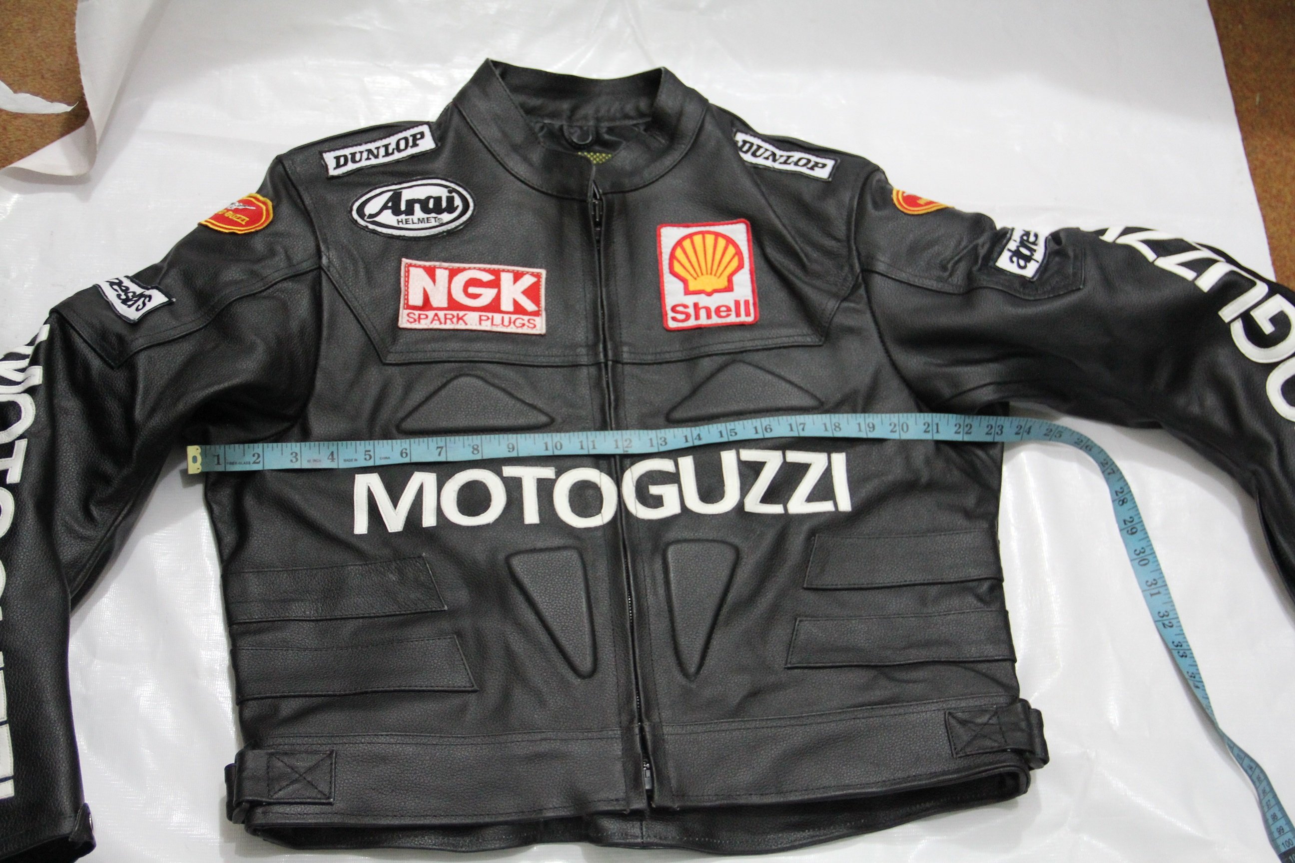 Men Moto Guzzi Motorcycle Leather jacket Black Leather Jacket With White Logo On Front