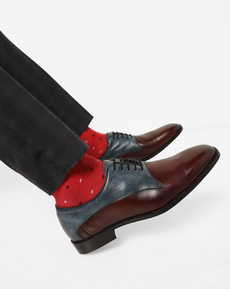Customize Gray Maroon Oxford Genuine Leather Derby Toe Handmade Formal Lace Up Shoes