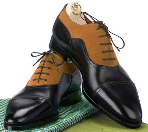 Handmade Men's Black Tan Leather Suede Cap Toe Lace Up Shoes, Men Designer Shoes