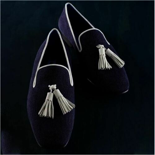 Men Handmade Blue Suede Loafer Shoes with Tassels, Men Slip on Shoes