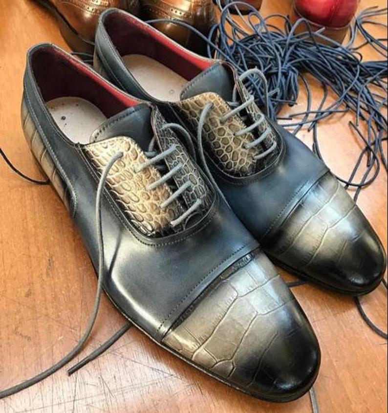 New Pure Handmade Gray Shaded Leather Crocodile Lace up Shoes for Men's