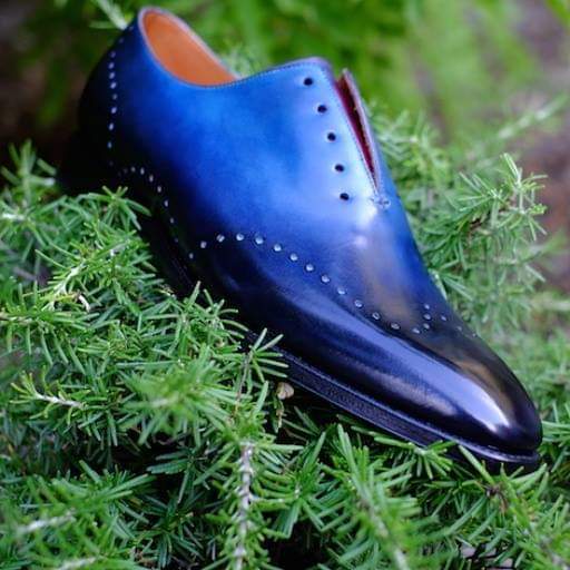 Handmade Best Whole Cut Blue Oxfords Leather Patina Finish Shoes For Men