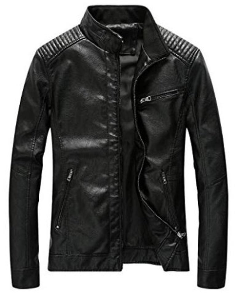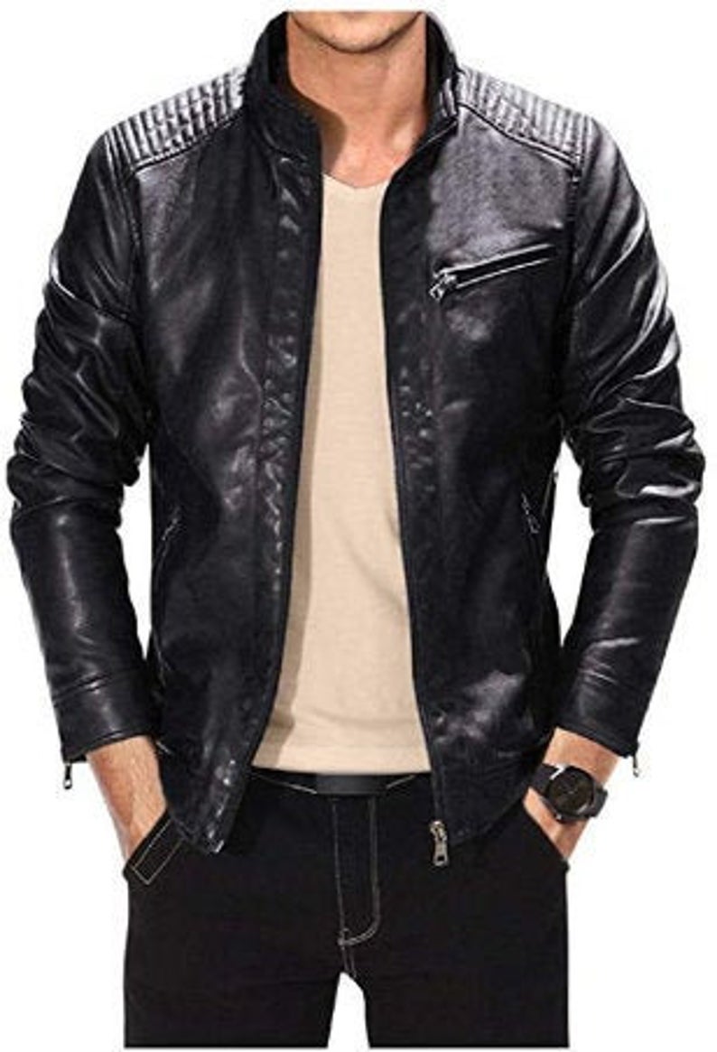 Vintage Slim Fit Motorcyle Lightweight Faux Leather Jacket for Men's Black