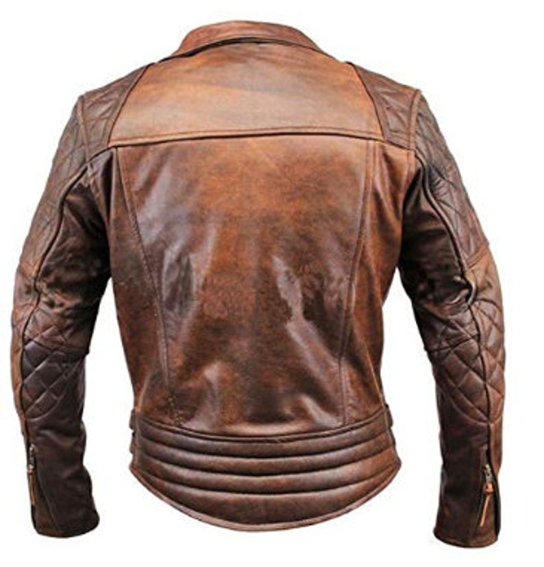 Mens Biker Motorcycle Vintage Distressed Brown Leather Jacket High quality Stitching