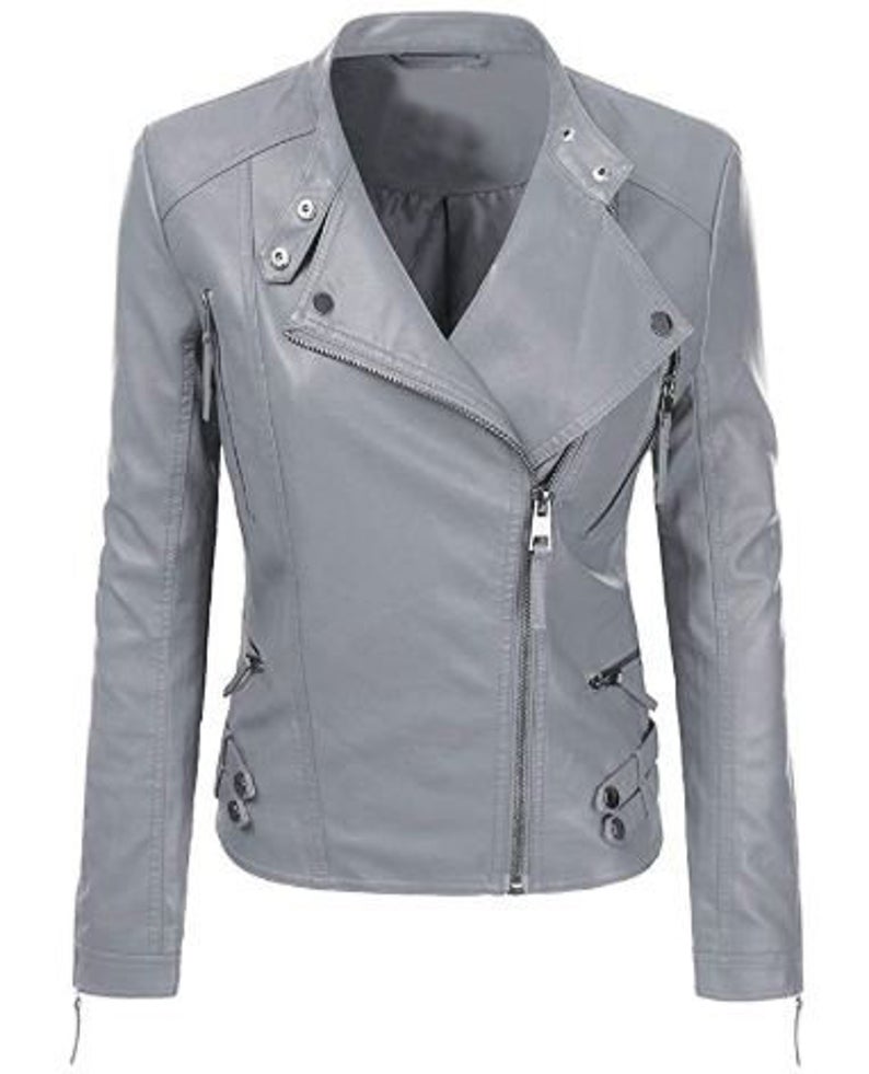 Women Motorcycle Moto Biker Gray Slim Fit stylish Lamb Leather Jacket for Ladies