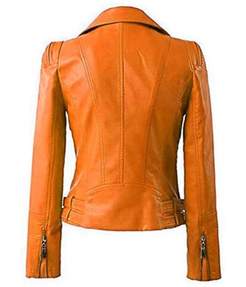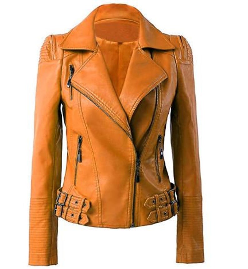 Womens Motorcycle Moto Biker Tan Missy Regular Slim Fit stylish Lambskin Leather Jacket for Ladies