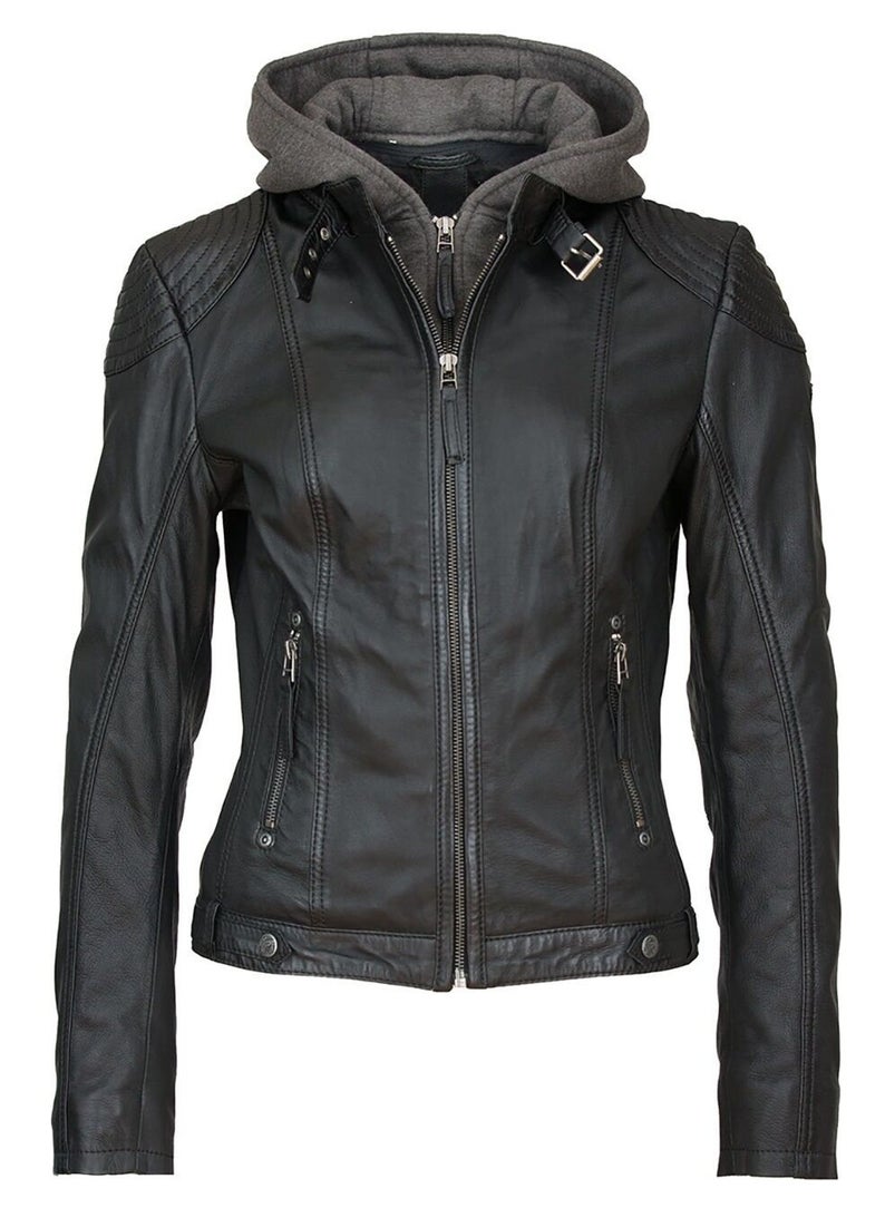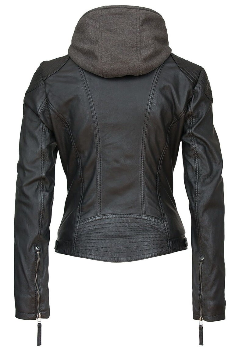 Women Moto Biker Motorcycle Racing Leather Jackets Removable Hood Lockable Black