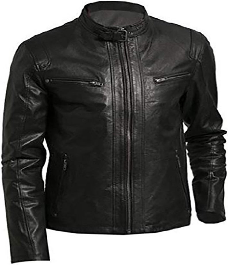 Womens Vintage Biker Cafe Racer Motorcycle Real Leather Jacket Black