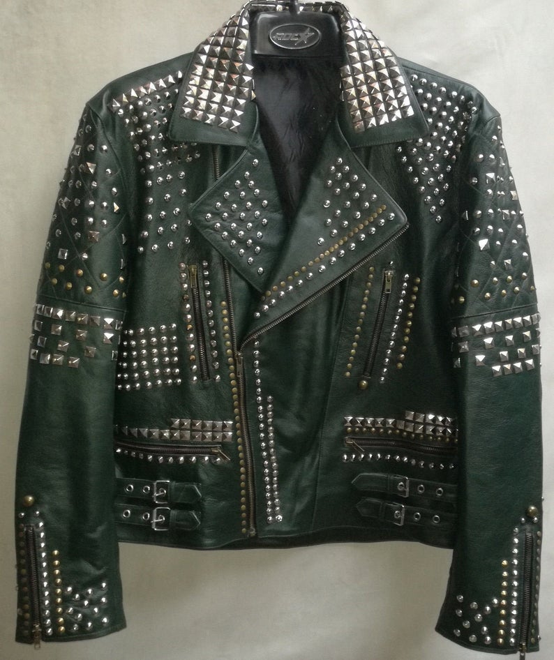 Fashion Jackets For Men Punk Style Studded Rock Style Real Leather Jacket All Sizes