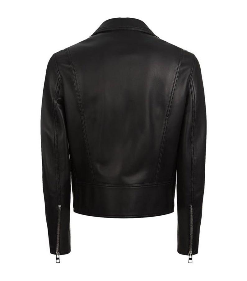Real New Genuine Lambskin Leather Designer Collection Black Biker Motorcycle Slim Fit with Zipped Pocket,Zipper,Collar Jacket