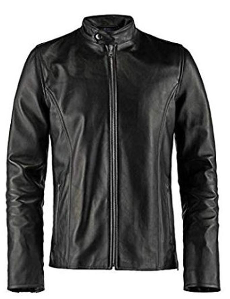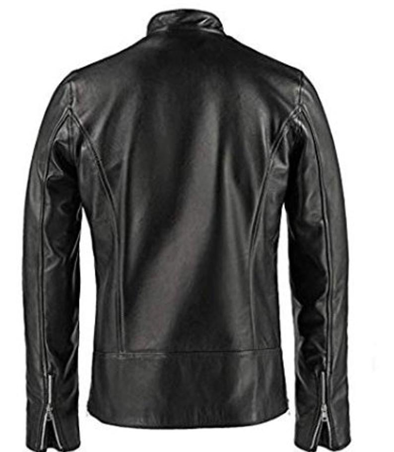 Black Vintage Fashion Style Biker Motor Cycle Sheepskin Leather Jacket