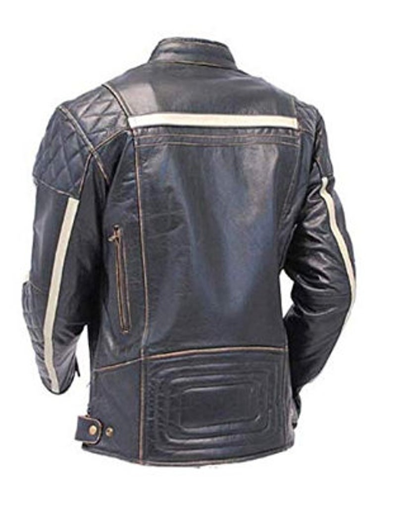 Mens Black White Stripes Motorcycle Biker Leather Jacket Internal Viscose Lining