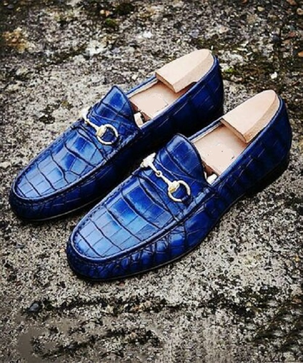 Stylish Blue Crocodile Texture Leather Moccasin Shoes for Men, Men Loafer Shoes