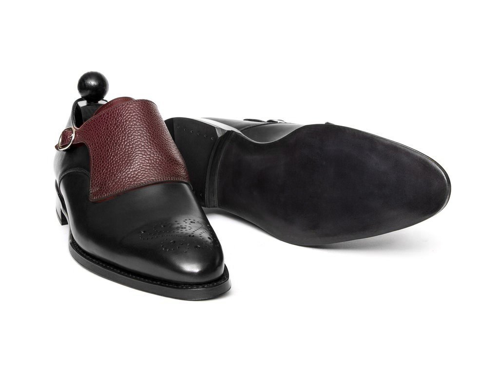 Men’s Handmade Black & Maroon Monk Leather Shoes, Men’s Two-Tone Formal Shoes