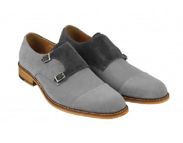 Men Monk Style Two Tone Suede Leather Double Strap Buckle Closer Contrast Sole Men Leather Shoes