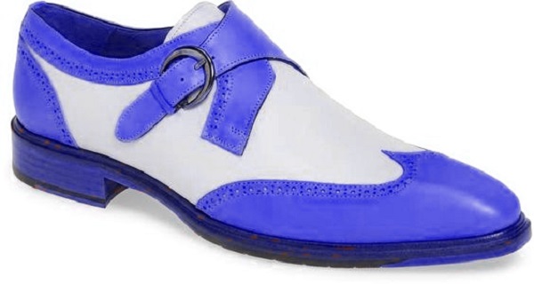 Monk White Blue Cont Single Buckle Strap Genuine Leather Wing Tip Handmade Derby Toe Two Tone Shoes