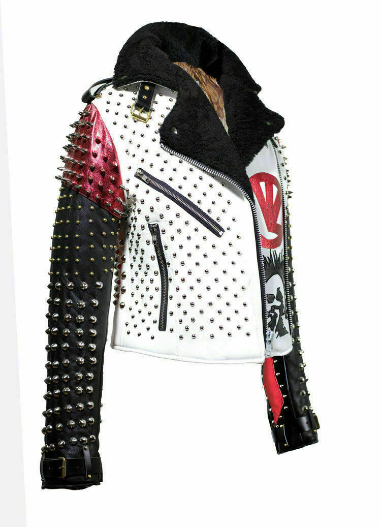 Men's Handmade Victor Luna Multicolor Studded Rock Punk Real Leather Jacket
