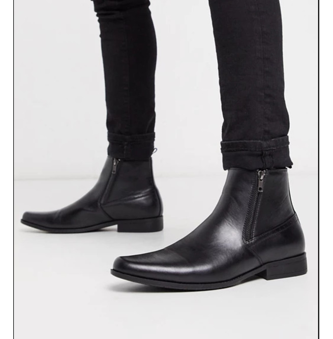 Men Handmade Black Leather Pointed Toe Zipper Chelsea Winter Boots