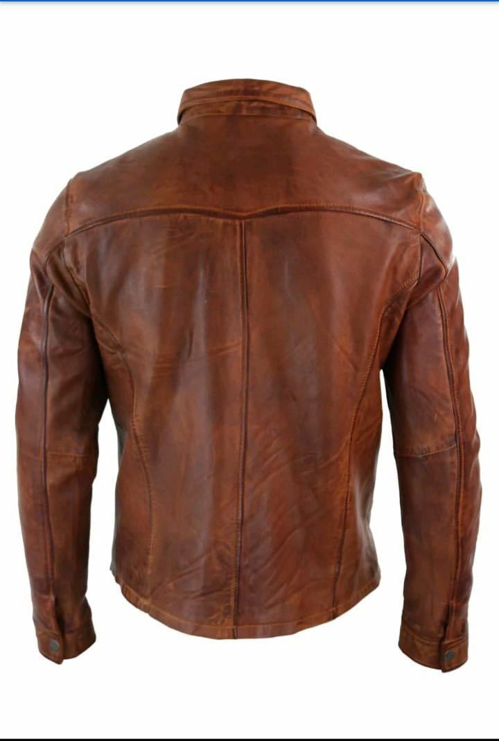 Mens Shirt Jacket Brown Real Soft Genuine Waxed Leather Shirt