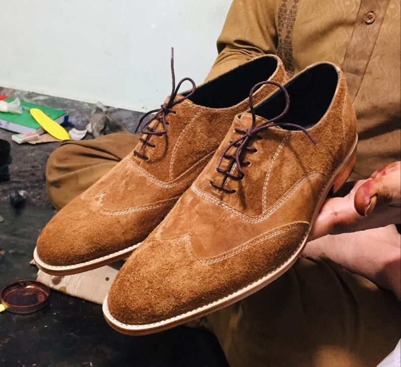 New Handmade Pure Camel Suede Stylish Lace Up Shoes for Men's