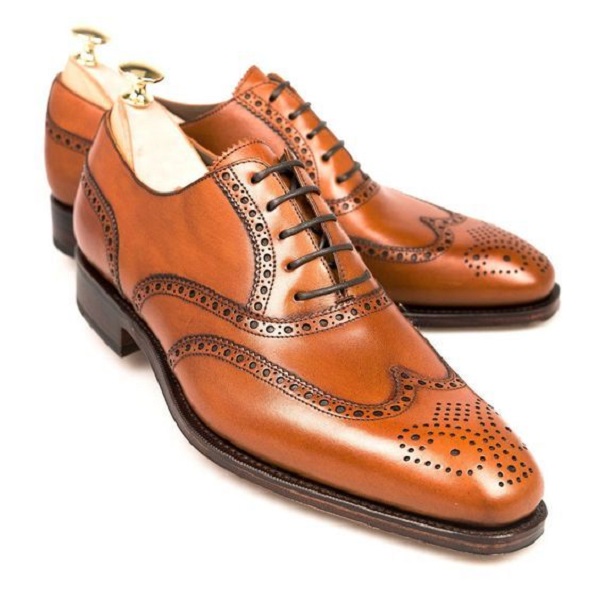 Tan Brown Oxford Wingtip Brogue Matching Sole Formal Leather Customize Men Shoes