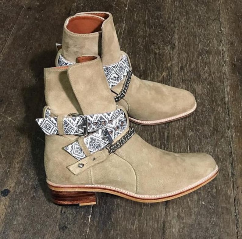 New Handmade Pure Suede Leather Stylish Chain Ankle Strap Boot for Men's